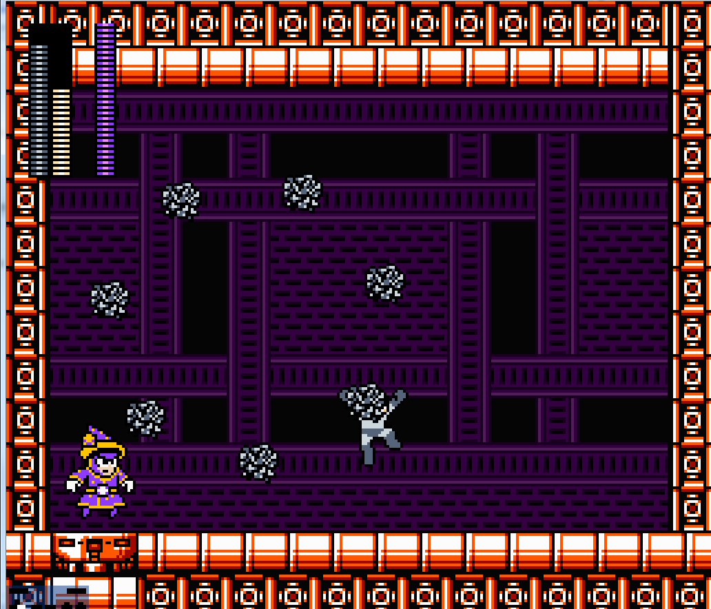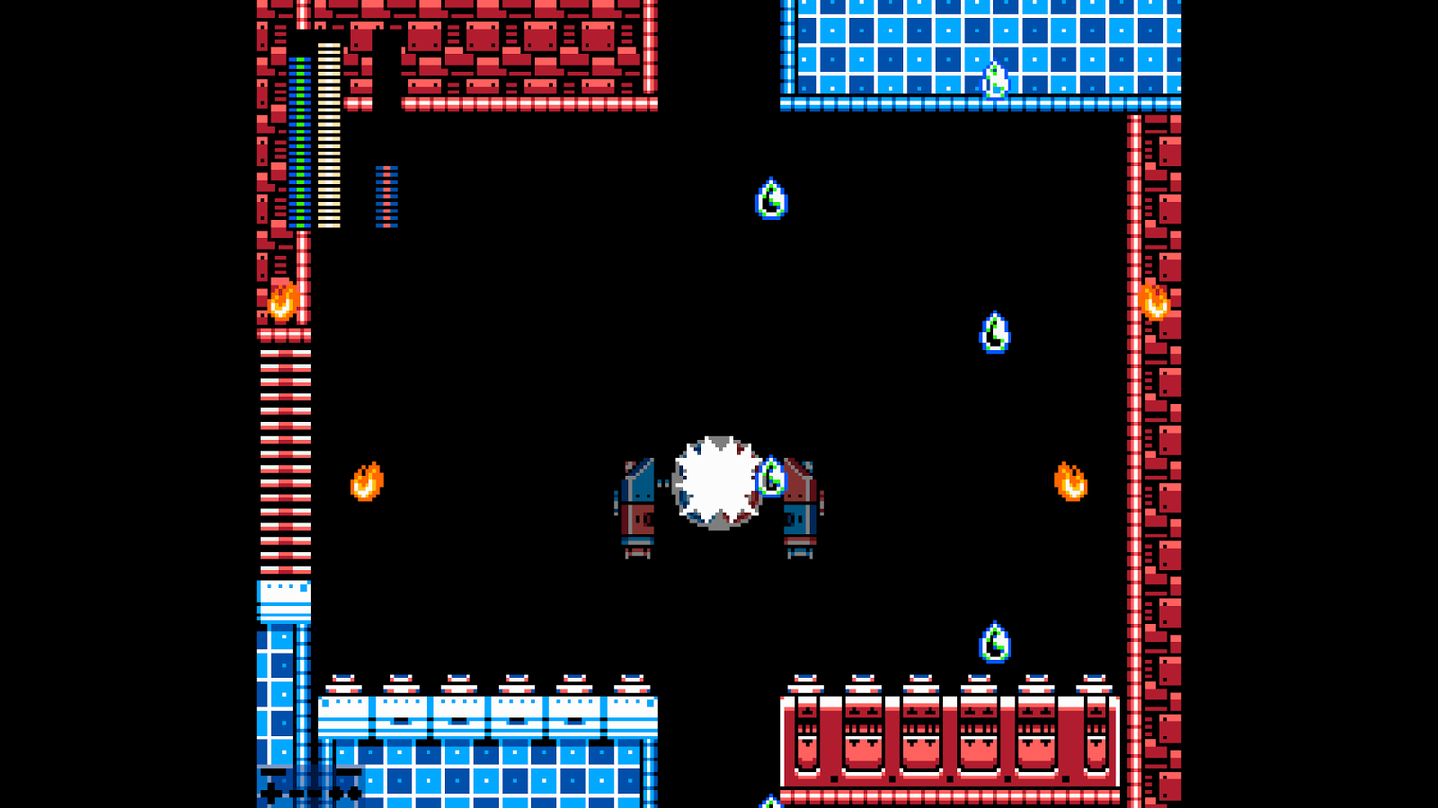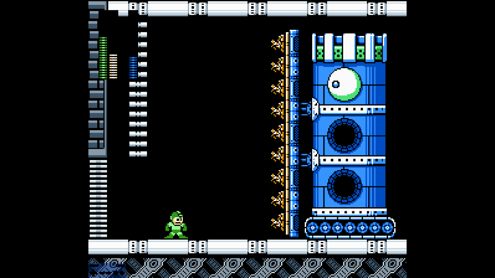 Chegou a hora de enfrentar o protoman,mas antes você terá que derrotar,os chefes do castelo,contra esse primeiro chefe user a arma do leafman,atire nos olhos para empurrar ele para ganhar tempo de subir na escada e atirar nos outros olhos.