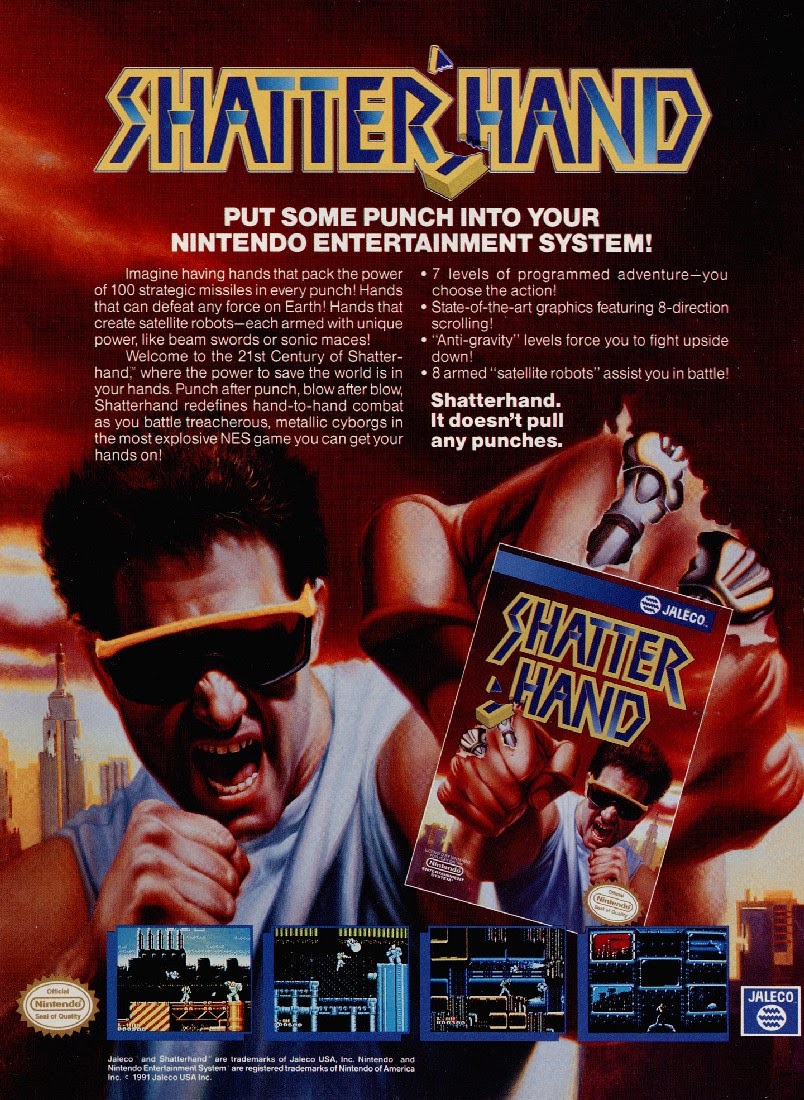 O SHATTERHAND FOI CARD DE UMA COLEÇAO, LANÇADA NOS ANOS 90 CHAMADA ZAP PAX CARTOES TIPOS BEISEBOLL,QUE TINHA VARIOS PERSONAGENS DE GAMES DA NINTENDO 8 BITS.