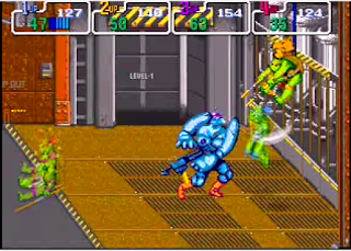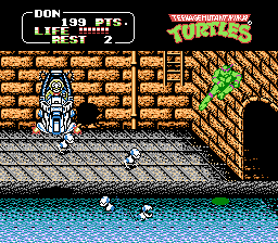 A única diferença nessa parte em relação ao nes,é que a do arcade o mestre splinter falar para suas tartarugas salvarem april no nes não tem som de falar mas animação é igual ao do arcade.
