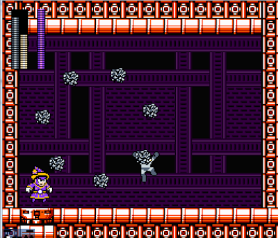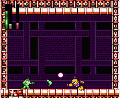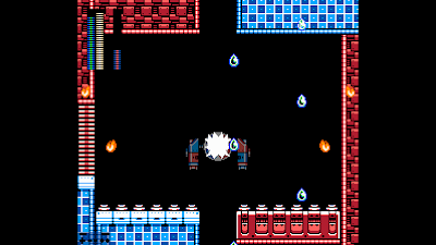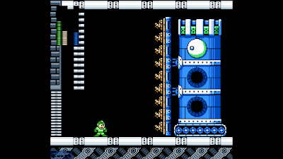 Chegou a hora de enfrentar o protoman,mas antes você terá que derrotar,os chefes do castelo,contra esse primeiro chefe user a arma do leafman,atire nos olhos para empurrar ele para ganhar tempo de subir na escada e atirar nos outros olhos.