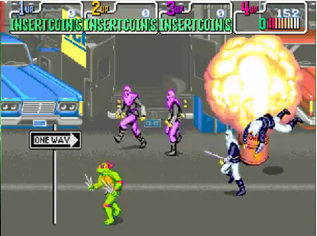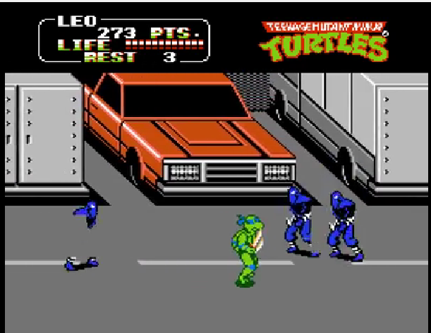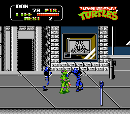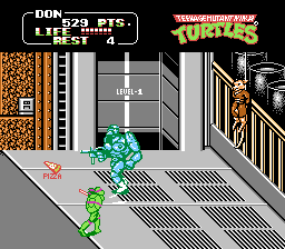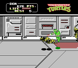 A única diferença nessa parte em relação ao nes,é que a do arcade o mestre splinter falar para suas tartarugas salvarem april no nes não tem som de falar mas animação é igual ao do arcade.