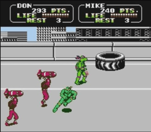 Bom aqui começa a diferença ao passar de fase,no nes você esta num park totalmente congelado,você enfrenta bonecos de neve robôs que lançam mísseis e tem que desviar de pedras de gelo que caem do céu.e fora os bueiros escondidos na neve,e no arcade você começa num estacionamento(essa fase também tem no nes).